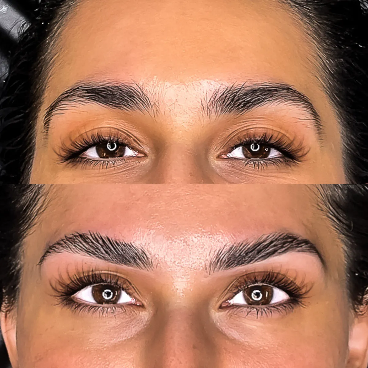 Fluffy, lifted, and styled brows that stay in place. Lamination tames unruly hairs and pairs with wax or tint for a complete brow makeover.